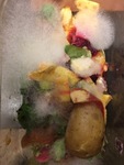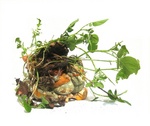 De COMPOÔST serie is in oorsprong tot stand gekomen na het legen van de compostemmer. Bij het leeg gooien van het groente en fruit in de composthoop merkte ik op dat alles aan elkaar bleef plakken. Door dit beeld te fotograferen en te isoleren in een witte omgeving krijgt het een vervreemdend, bijna romantisch effect.